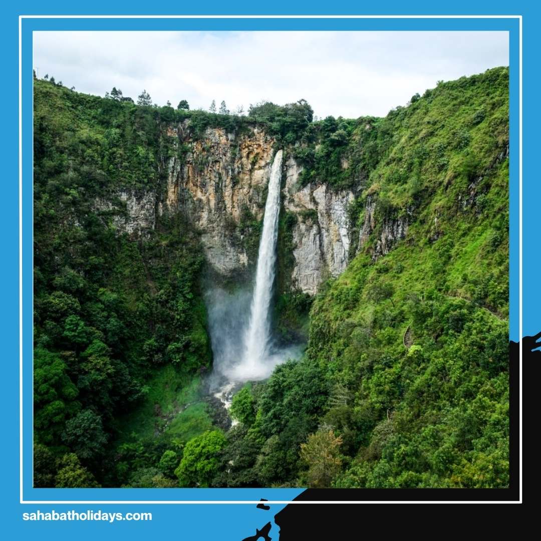 Sipiso Piso Waterfall is one of the most spectacular natural attractions near Lake Toba. The waterfall plunges approximately 120 meters into a deep valley, creating a dramatic view that impresses every visitor. From the viewing area above, travelers can also see the northern edge of Lake Toba stretching across the horizon.